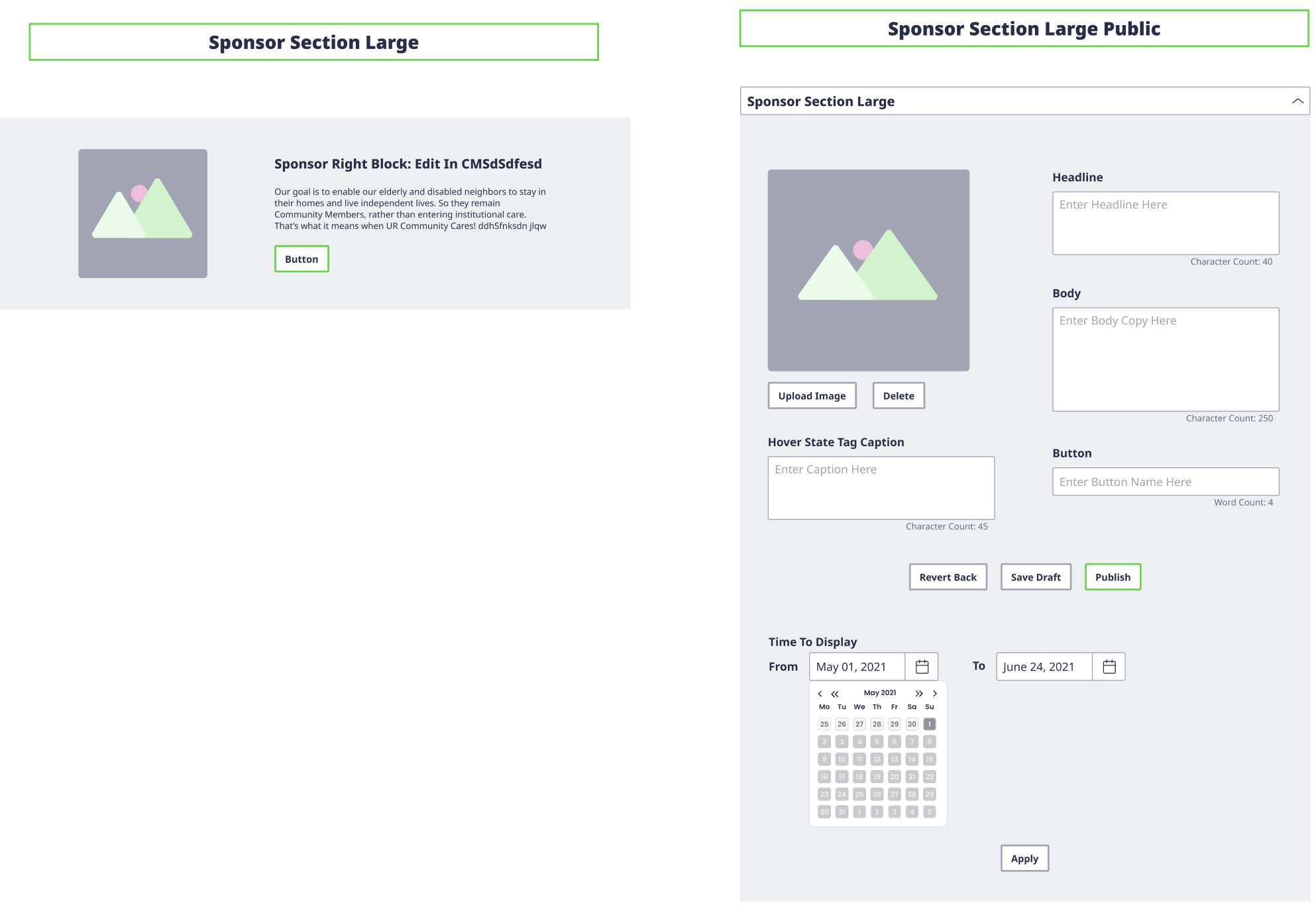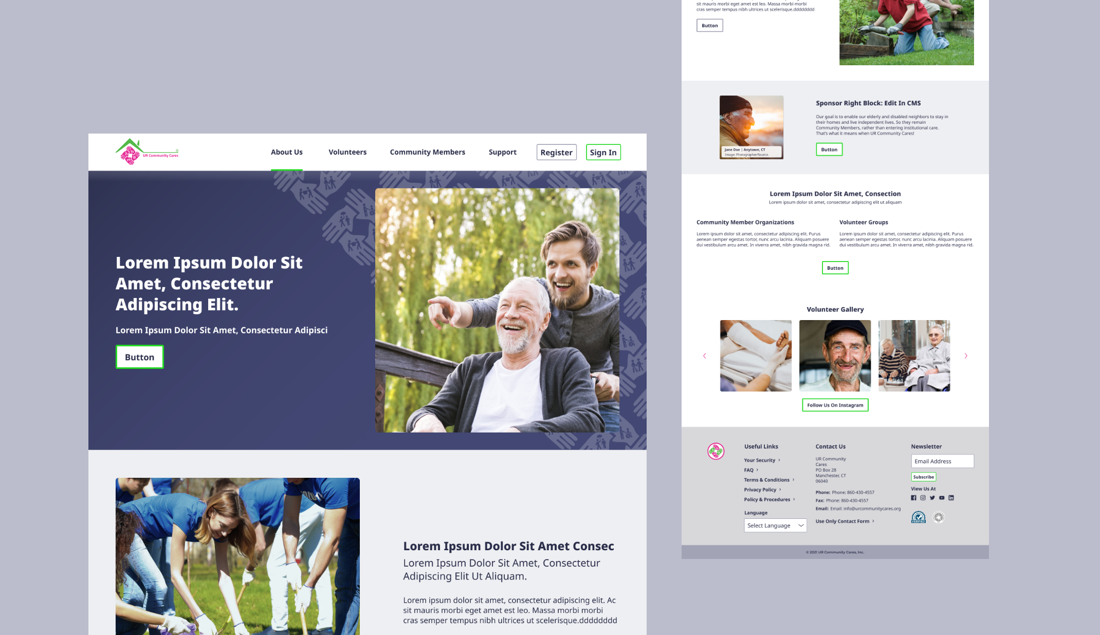 We designed a template version of different widget sections that can be reused as different parts on the site to create all the pages. Also, based on the consideration that most content will change over time according to the community’s needs, we designed the content control system for the widget sections.