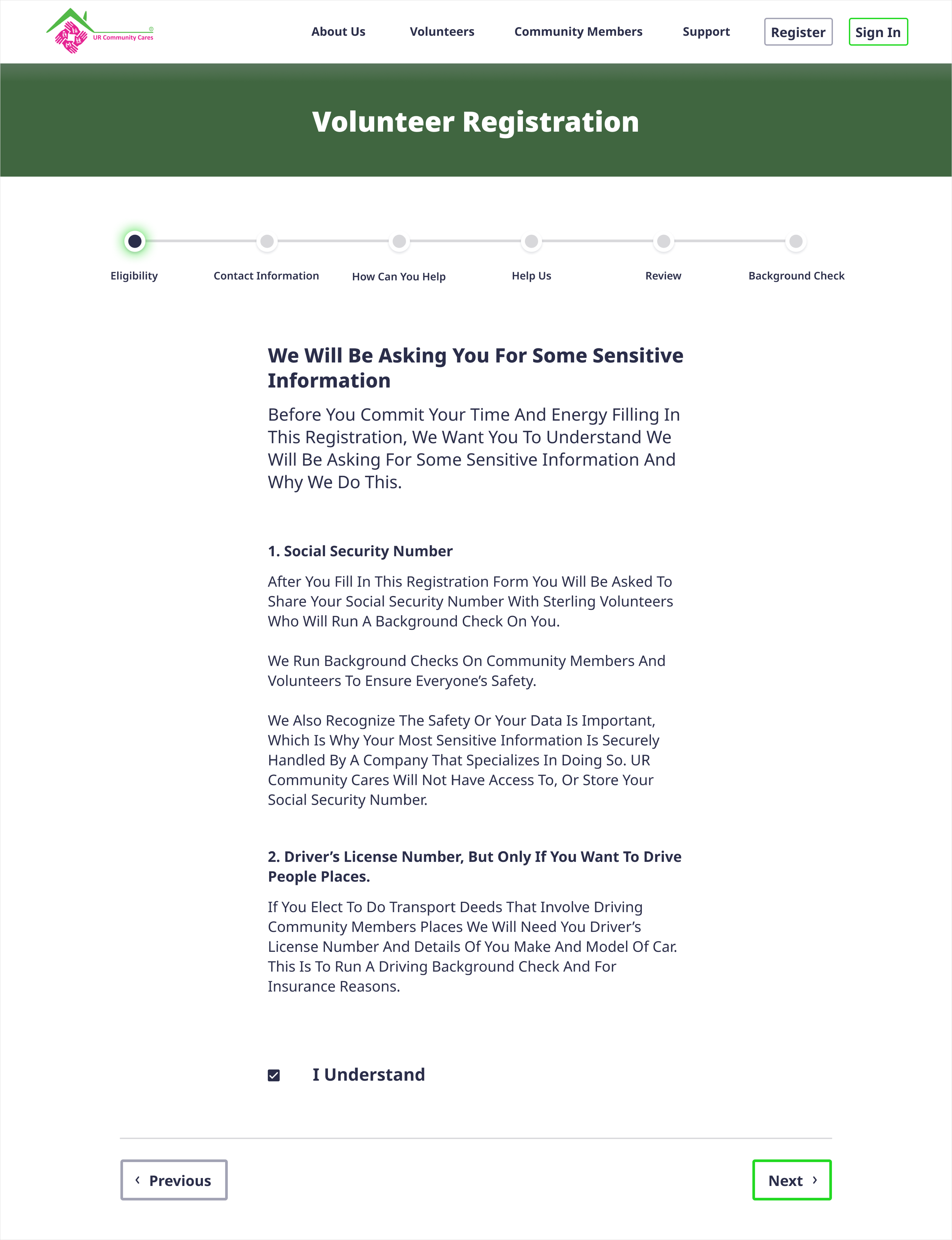2. The current registration process for volunteers and community members needs to be redesigned into a user-friendly process.